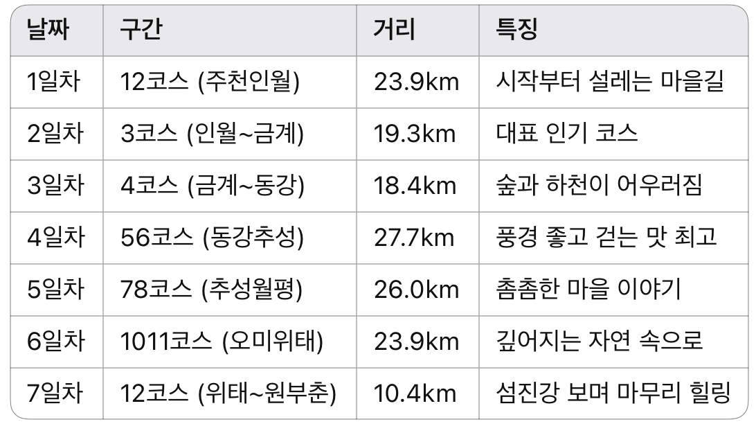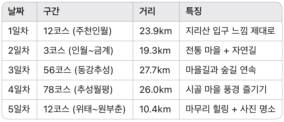 ⛰️ [중급자용] 걷기여행 5일 코스