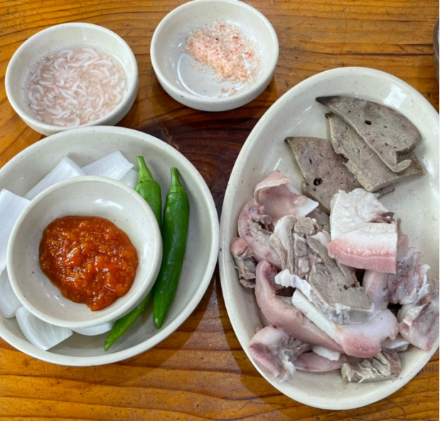 내가 이곳을 사랑하는 가장 큰 이유는 바로 맛보기 머릿고기와 파 다진 양념이다. 식당에 앉으면 머리 고기와 밥을 먼저 주는데 흰쌀밥을 한 숟갈 뜨고 머리 고기를 얹고 그 위에 파 다진 양념을 올려 먹으면 그 맛이......... 그 맛이......