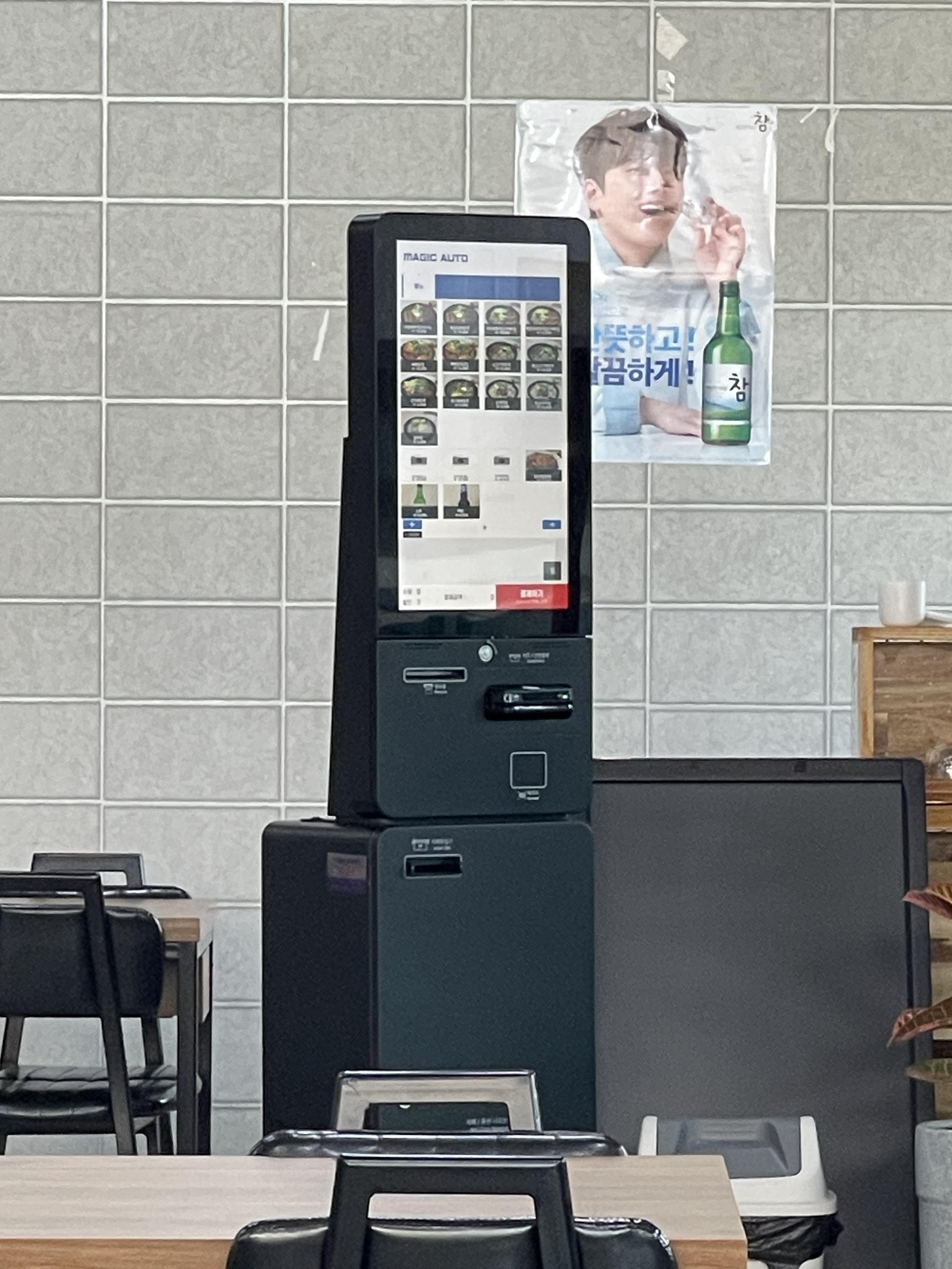여기에 이 식당의 시스템을 좀 더 자세히 설명하자면 우선 모든게 셀프다. 대형마트 푸드코트의 시스템을 생각하면 된다. 키오스크롤 주문하면 주문번호가 나오고 그 주문번호를 갖고 자리에 앉으면 배식구 앞에서 번호가 뜬다. 그럼 가서 음식을 받아오고 다 먹고 나면 빈 그릇을 식판수거함에 넣으면 된다. 조금 귀찮지만 익숙한 시스템이다.