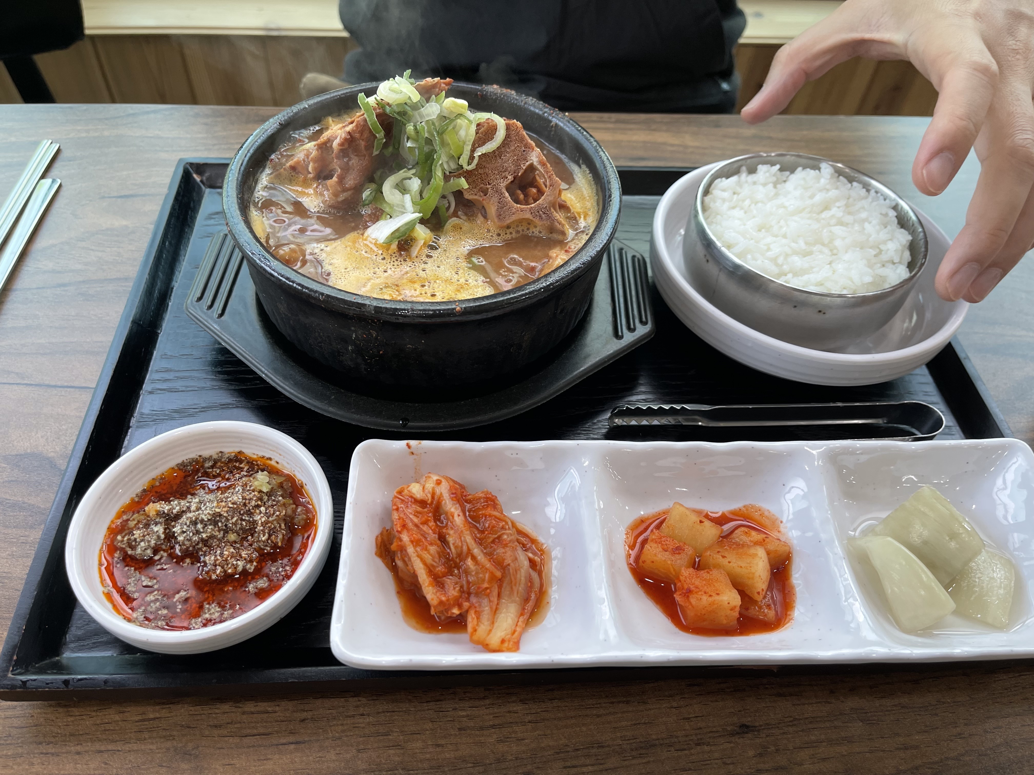 어릴 적엔 몰랐다. 부모님이 왜 그렇게 뼈다귀 해장국을 좋아하시는지. 이젠 안다. 칼칼하고 진한 국물에 고기와 우거지를 먹을 때의 그 뜨끈함. 그리고 흰쌀밥에 살짝 국물을 적셔 고기와 우거지를 올려 한 입 크게 먹고 깍두기와 야채 초절임을 먹으면 그렇게 행복할 수가 없다. 사실 30대 초 까지는 그냥 가끔 오가다 먹는 정도였지만 40대 근처로 가면서 주기적으로 먹어줘야 하는 음식이 되었다. 그래도 순댓국을 아직 능가하진 못했지만 순댓국이 너무 질려 버린다면 단숨에 1위를 꿰차고도 넘을 어마어마한 가능성을 가진 녀석이다. 회사에서 주는 단체밥이 질려 나가서 사 먹을때면 자연스럽게 연령대가 나뉜다. 20대에서 30대까지는 맥도날드, 파스타, 마라탕, 돈까스 등과 같은 음식을 선호하고 40대 즈음부터 그 위까지는 순댓국, 뼈다귀해장국, 대구탕, 순두부찌개, 중국집 등과 같은 음식을 선호한다. 애매한 세대에 걸쳐 있던 나는 30대와 40대를 오가며 양쪽 모두를 소화하는 폭넓은 움직임을 선보였지만, 어느샌가 40대로 심하게 치우쳐 있었다. 30대 친구들과 점심 식사를 갈 때면 어린친구들이 왠지 내 눈치를 보는 듯한 느낌을 받아 쉽게 함께 가지못했다. 하지만 여기는 30대 친구가 찾아준 맛집으로 구내식당 같은 느낌이지만 맛과 구성이 알차다.