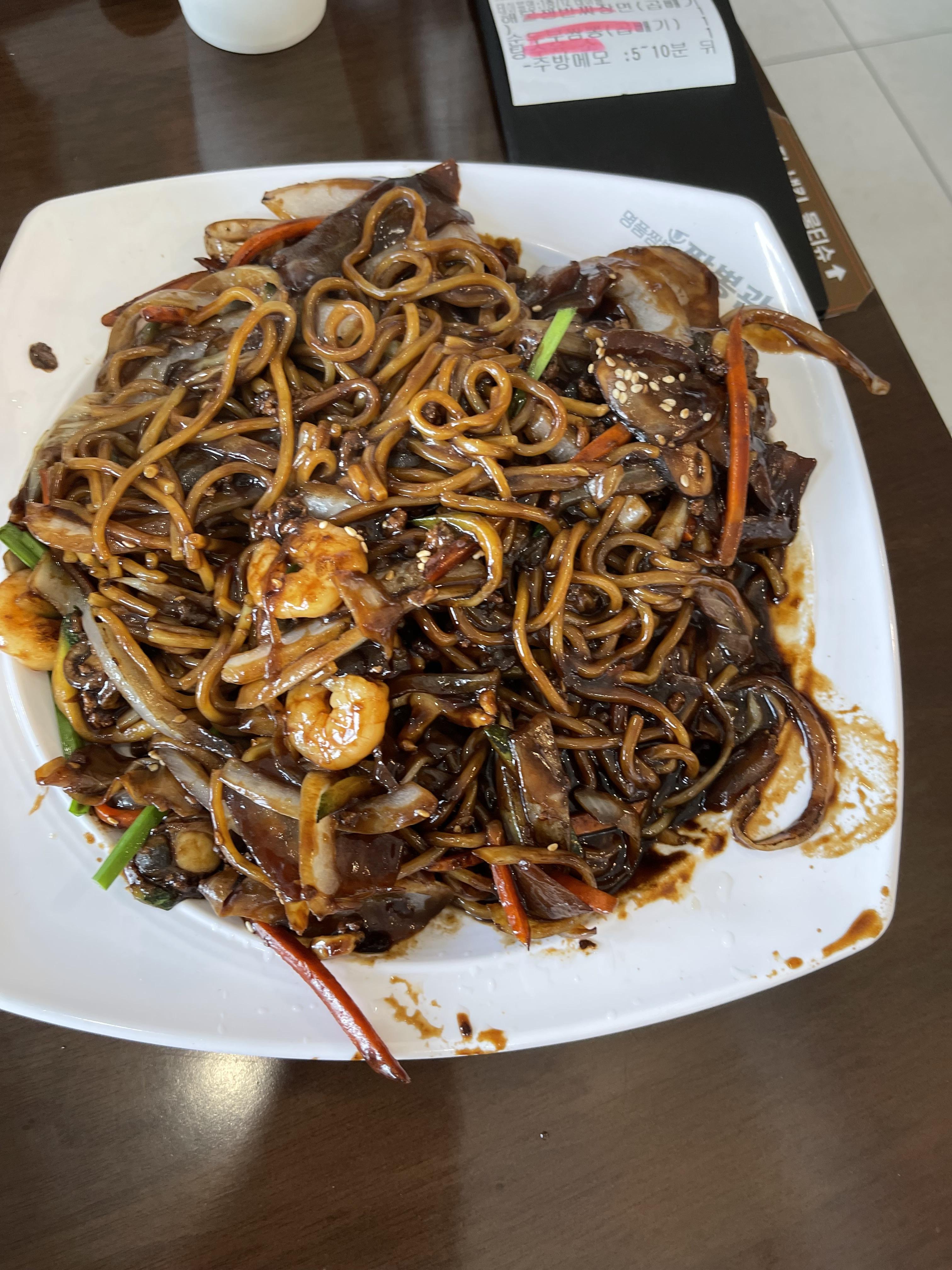 다음은 해물 쟁반 짜장이다. 보통 짜장면 집에서는 해물쟁반짜장을 2인부터 받는다. 하지만 여긴 1인주문 가능하다. 맛이 없지는 않지만 짬뽕에 살짝 밀리는 느낌이다. 아무래도 식당이름이 짬뽕관이다 보니 짬뽕이 주력 메뉴인가 보다. 그래도 파김치와 함께 먹으면 맛있다.