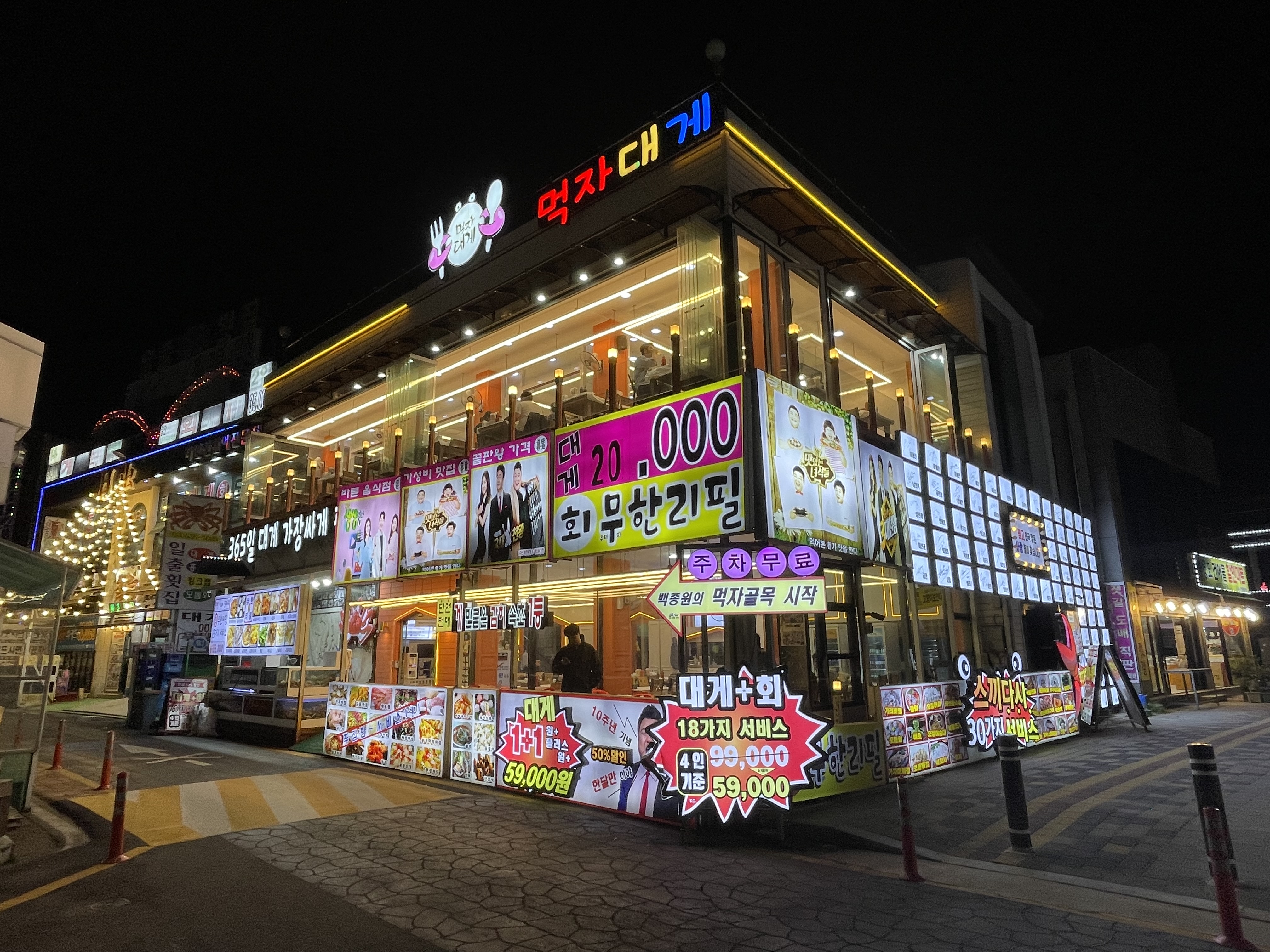 대회를 다녀오고 저녁을 먹으러 대포항 먹자골목으로 갔다. 우리는 속초 라마다에 머물렀기 때문에 걸어서 쉽게 갈 수 있었다.