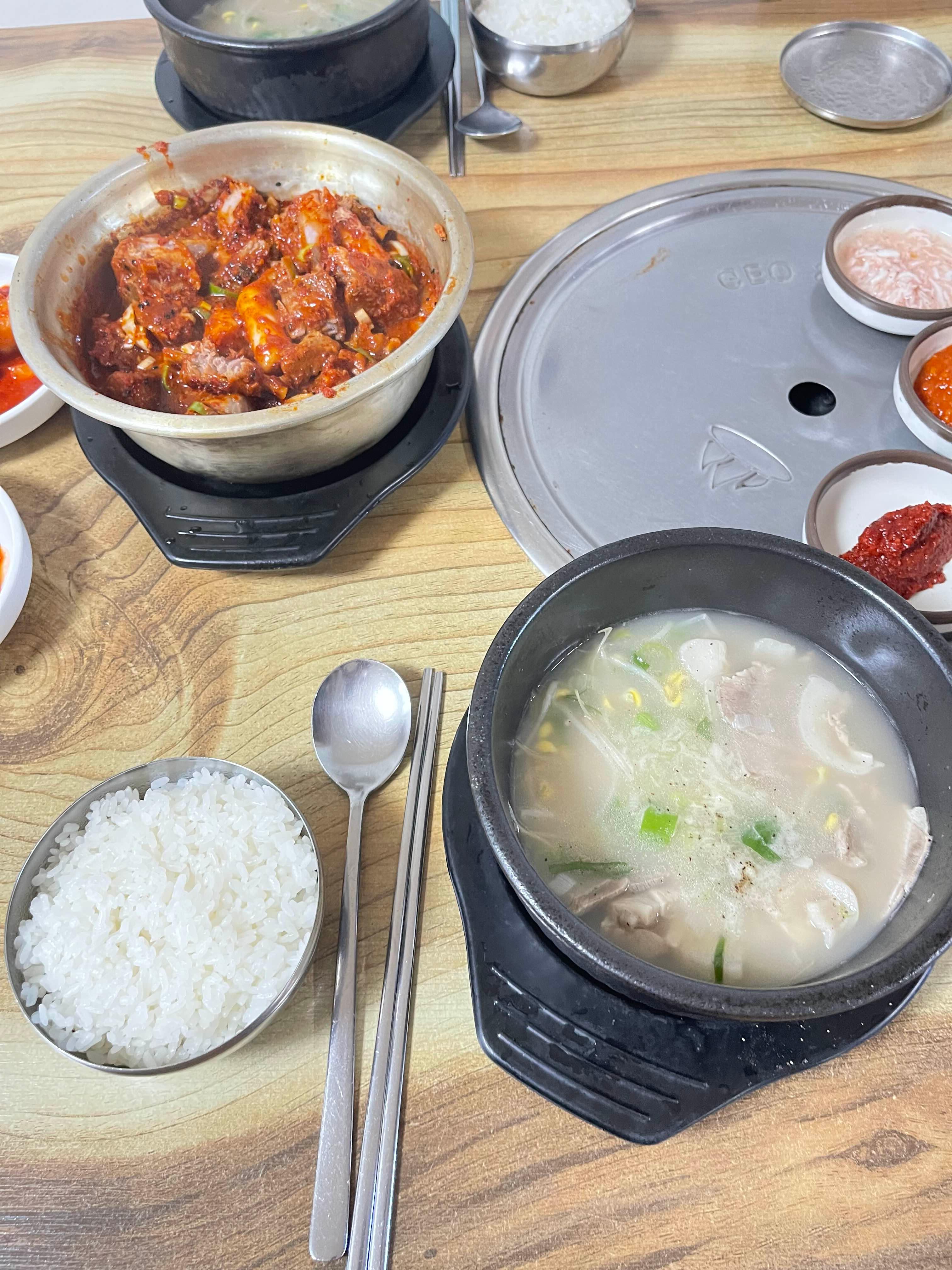 매운 등갈비 + 돼지국밥 + 계란찜 + 반찬까지