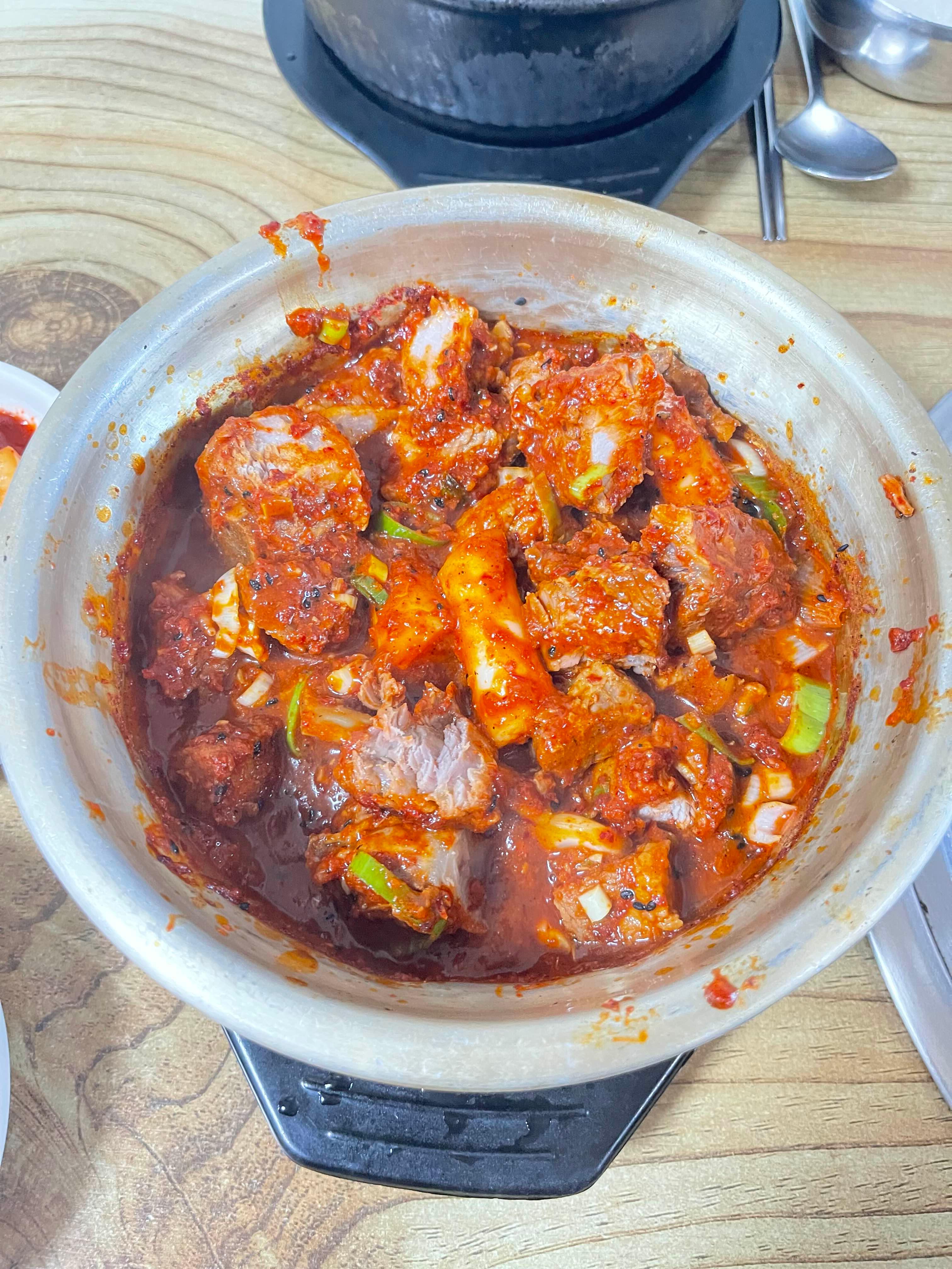 매운 등갈비는 커다란 양은 냄비에 꽉꽉 담겨 나와요 🤩