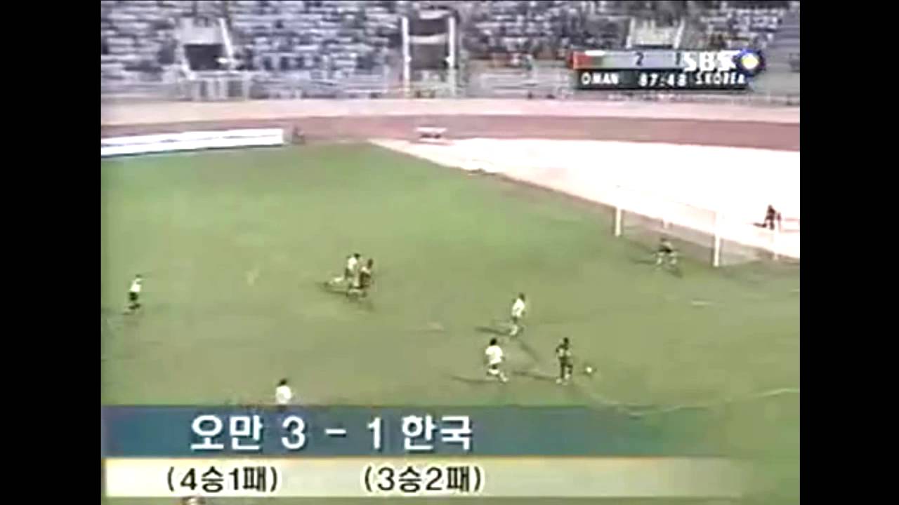 • 상세 내용: 이 경기에서 대한민국은 오만에게 1-3으로 패배하며 ‘오만 쇼크’라는 충격을 받았습니다. 이는 대한민국이 오만에게 당한 유일한 패배로 기록되어 있습니다.